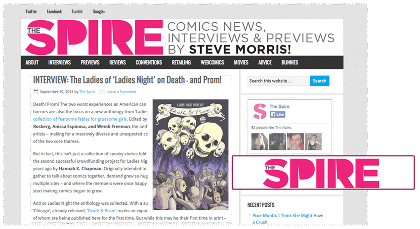 SEPT. 2014 -- (Comic Spire) Shawnee´& Shawnelle Gibbs (alongside other comic writers and artists) discuss their work from the Graham Cracker Comics': Ladies Night Anthology: Death and Prom, Vol. 2, a showcase and celebration of women in comics. Article by Steve Morris.