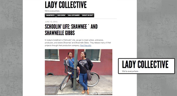 JUNE 2015 -- (Lady Collective) For Lady Collective's "Schoolin' Life" series, Shawnee´& Shawnelle Gibbs chat about their growth as women in television, animation, comics and life. Article by Meg Duffy.