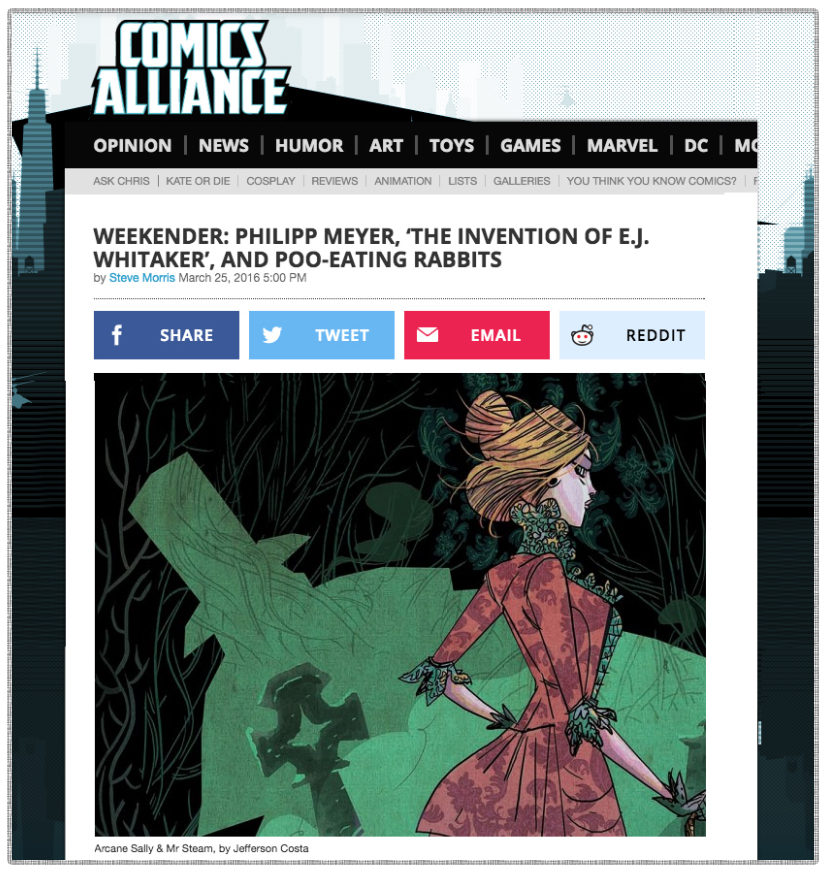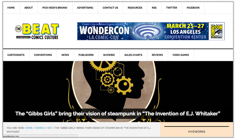 MARCH 2016 -- (Comics Alliance) Steve Morris features The Gibbs Sisters "Invention of E.J. Whitaker" as a part of his Weekend Round Up. Article by Steve Morris.