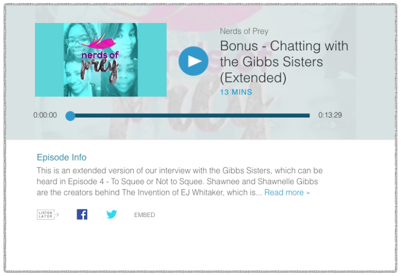 MARCH 2016 -- (Nerds of Prey) The Gibbs Sisters talk with Shannon Miller of the Nerds of Prey podcast about their upcoming steampunk comic, The Invention of E.J. Whitaker.