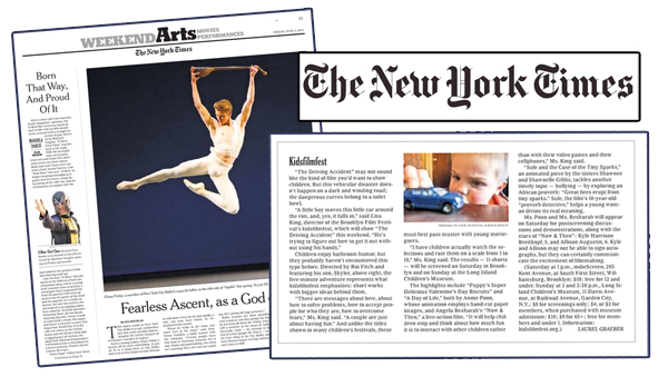 JUNE, 2011 -- (The New York Times) -- "Kidsfilmfest" The New York Times cites "Sule and the Case of the Tiny Sparks" as a highlight of the Brooklyn International Kids Festival. Article by Laurel Graeber.