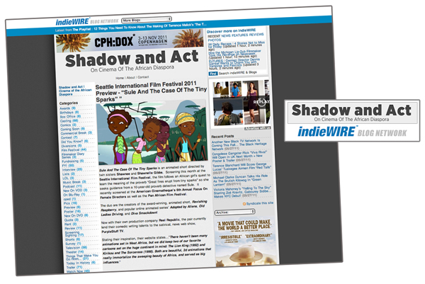 MAY, 2011 -- (Shadow and Act | On Cinema of The African Diaspora / IndieWIRE) -- "Seattle International Film Festival 2011 Preview -." Sule's Seattle Premiere is featured, as well as an overview of The Gibbs Sisters' projects. Article by Cynthia Reid.