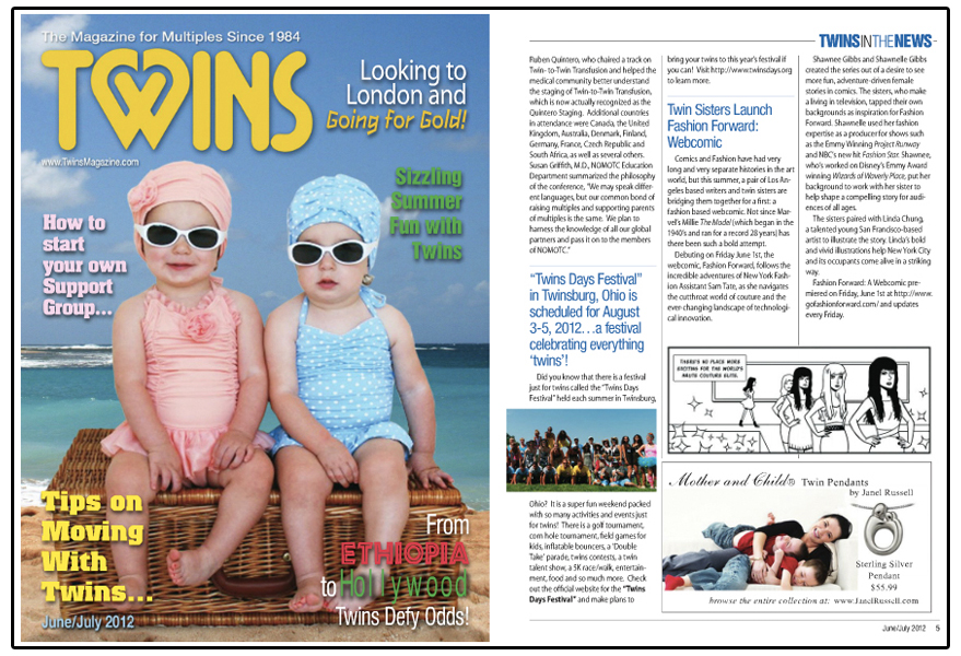 JULY, 2012 -- (Twins Magazine) -- The debut of Fashion Forward: The webcomic is featured in Twins Magazine (page 5).